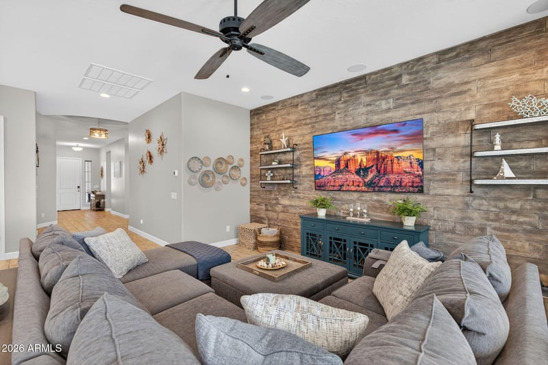 Residents of Verrado enjoy a vibrant master-planned lifestyle with tree-lined streets, two championship golf courses, more than 80 parks, highly rated schools, and a charming Main Street district with dining, shopping, and community events. Outdoor enthusiasts appreciate direct access from the front door to nearly 30,000 acres of scenic trails and desert beauty in the surrounding White Tank Mountain Regional Park.