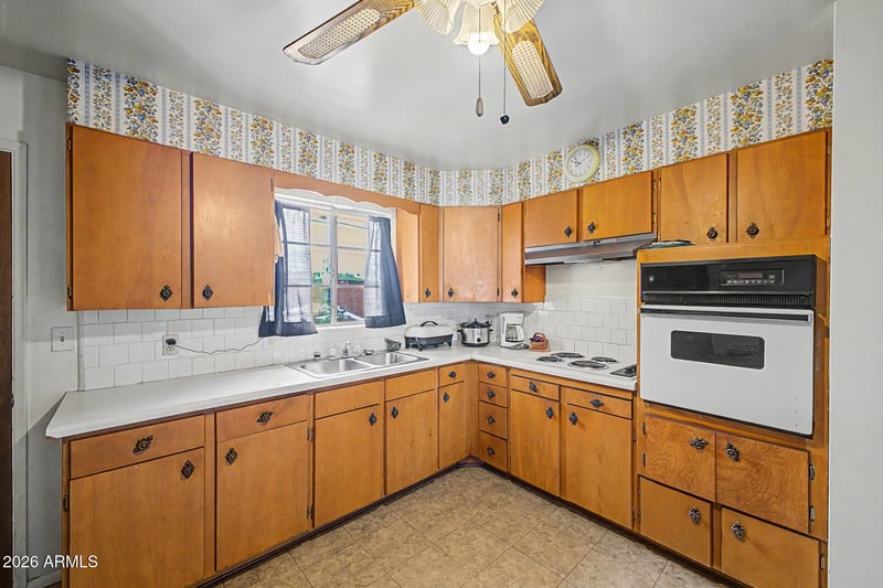 You'll first notice the sizable carport parking and easy-care landscape. Inside, you'll be greeted in a spacious living room with plenty of space for entertaining and relaxation, featuring wood-look flooring, ample natural light, and neutral paint. The kitchen comes equipped with abundant cabinetry, tile backsplash, a peninsula, and built-in appliances for a seamless cooking experience.