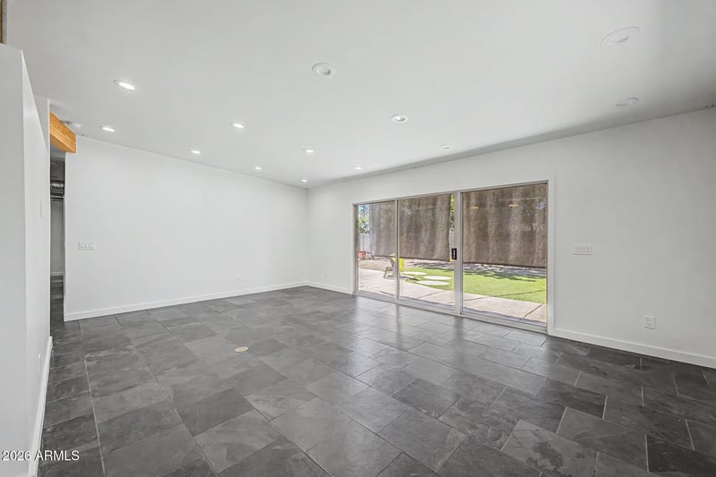 Listing details for 2126 La Rosa Dr, Tempe, AZ 85282 : Mid-Century Modern with Guest House & No HOA! Central Tempe home with a separate studio-style guest house featuring an open living/sleeping area, kitchen & full bath--ideal for guests, rental or multigenerational living. The main home offers dark tile flooring & a spacious living area with a glass slider to the backyard. Kitchen features quartz countertops, stainless steel appliances, breakfast bar seating & flows into a large dining or secondary living space with its own slider to the front patio. One bedroom includes a split layout with barn door separation & backyard access. The primary suite offers a private ensuite with walk-in shower. Two additional bedrooms are well-sized, with a secondary bath featuring dual vanities & shower/tub combo. Backyard includes a wood-deck patio, synthetic grass & outdoor fireplace. Storage off the carport & alley access add privacy. Close to Tempe schools, near ASU main campus, Loop 101 & SR-60, with potential for income, flexibility or extended living.