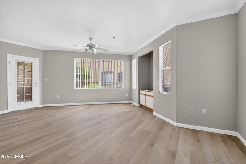Listing details for 2134 Broadway Rd #1042, Tempe, AZ 85282 : Discover easy, low-maintenance living in this charming first-floor condo located within the gated Villa Real community in Tempe. Perfectly positioned near ASU, Loop 101 & 202, and a wide variety of shopping and dining options, this 2-bedroom, 2-bath home offers both convenience and comfort. Situated in a quieter section of the community, the unit features parking just steps from your front door. Inside, you'll find a thoughtfully designed layout with a versatile kitchen workspace, in-unit full-size washer and dryer, and a dedicated dining area with built-in storage. Both bedrooms are spacious and include oversized walk-in closets. Enjoy your own private patio with additional storage, ideal for relaxing or extra space. Residents of Villa Real have access to community amenities, including a pool, spa, fitness center, and clubhouse--making this an ideal opportunity for full-time living, a lock-and-leave lifestyle, or investment property in the heart of Tempe.