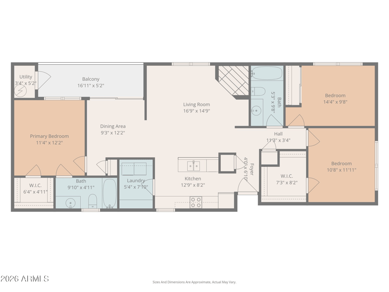 Two bedrooms include generous walk-in closets, and the home has abundant storage throughout, along with can lighting, ceiling fans with lights, and a full-size washer and dryer.