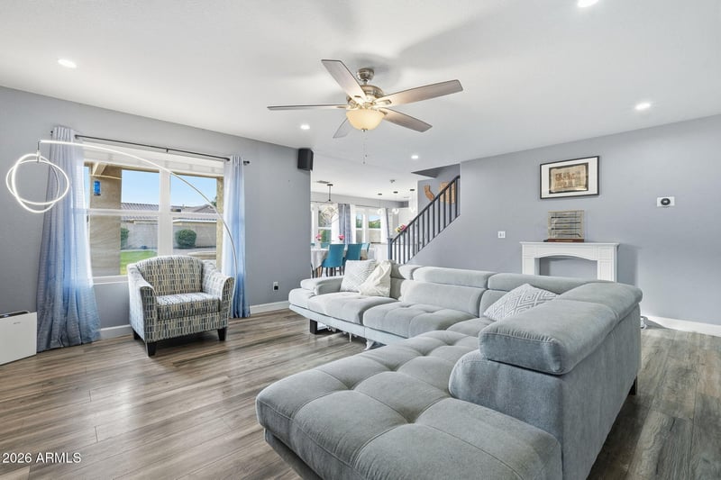 Listing details for 2141 Remington Pl, Chandler, AZ 85286 : Cul-de-sac home with north-south exposure, extended driveway, RV gate, and oversized gravel parking area. Exterior painted in 2022. Interior updates include LVP cushioned flooring (2020), white cabinetry, stainless steel LG appliances, gas range conversion, and updated kitchen and baths (2019). Kitchen features a contrasting island and built-in family room entertainment center. Flexible loft provides additional living space. Primary suite includes two walk in closets, large glass-enclosed shower with dual rain heads, and heat-ready display. Backyard offers a heated salt-water pool, spa, extended paver patio, grass area, and ample yard space. Neighborhood park with playground and open green space located at the end of the street. Garage equipped w/240-volt Level 2 EV charger.