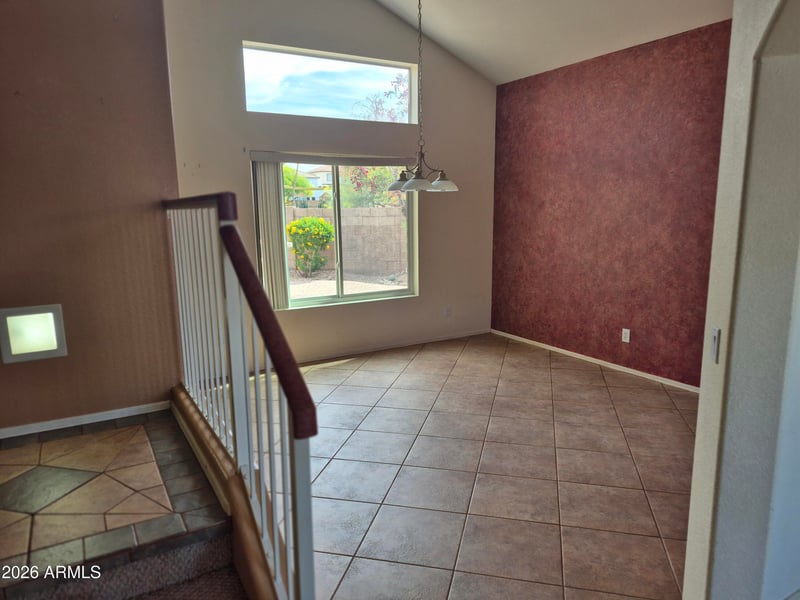 Listing details for 21425 107th Dr, Peoria, AZ 85373 : Great FIVE bedroom home with 16' tile everywhere but bedrooms! One full bedroom and bath downstairs, plus den/media center, dining room, and large family room with built in entertainment wall off of kitchen. Other 4 bedrooms upstairs. Backyard paradise! Pool with outside shower and built-in BBQ, fountain, custom brick trim, extended covered patio, RV gate AND RV parking. Large master bedroom with additional exit to private balcony. Newer AC but original roof. Three car garage has built in cabinets. Gas/elec. home. This great home is in a quiet, well maintained neighborhood with NO HOA. Owner can put your own updated flare to make this home your own. Tile Floors just refinished. Also newer windows! Needs updating bring your contractor or skills:-) Awesome location! Priced under market!