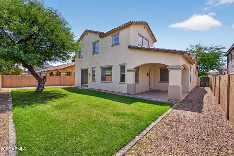 Listing details for 21434 Nightingale Rd, Queen Creek, AZ 85142 : Beautifully updated and ideally located in the heart of Queen Creek, this 3br + loft, 2.5ba home offers stylish finishes, functional living, and unbeatable convenience just minutes from Queen Creek Marketplace, Costco, Frontier Family Park, SR-24, and Loop 202. The thoughtfully designed floor plan features a desirable main-floor primary suite, providing privacy and convenience for everyday living. Interior updates completed in 2025 include luxury vinyl plank flooring, plush patterned carpet, quartz countertops, marble tile in the bathroom, updated fixtures, and designer cabinet hardware, creating a fresh, modern aesthetic throughout. The bright and open living spaces flow seamlessly into the kitchen and dining areas, ideal for both entertaining and everyday life. Upstairs, you'll find two Beautifully updated and ideally located in the heart of Queen Creek, this 3 bedroom + loft, 2.5 bath home offers stylish finishes, functional living, and unbeatable convenience just minutes from Queen Creek Marketplace, Costco, Frontier Family Park, SR-24, and Loop 202. The thoughtfully designed floor plan features a desirable main-floor primary suite, providing privacy and convenience for everyday living. Interior updates completed in 2025 include white oak-style luxury vinyl plank flooring, plush patterned carpet, quartz countertops, marble tile in the primary bathroom, updated fixtures, and designer cabinet hardware, creating a fresh, modern aesthetic throughout. The bright and open living spaces flow seamlessly into the kitchen and dining areas, ideal for both entertaining and everyday life. Upstairs, you'll find two secondary bedrooms plus a versatile loft perfect for a home office, playroom, or media space. Step outside to a spacious backyard with lush grass and a mature shade tree, offering room to relax, play, or entertain. A turnkey opportunity in one of Queen Creek's most convenient locations!