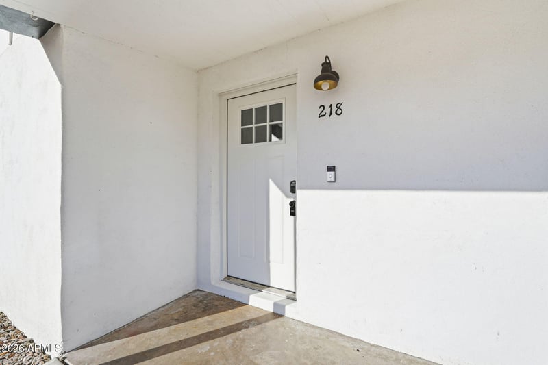 Listing details for 218 Glenmar Rd, Mesa, AZ 85208 : NO HOA! This beauty sits on a gorgeous corner lot in Mesa and is fully upgraded. Enjoy outdoor living in the private backyard with a sparkling diving pool, RV gate, and detached garage. New interior paint, upgraded bathrooms, quartz kitchen counters, stainless steel appliances with white shaker cabinets, and stylish updated fixtures throughout. Desert landscaping adds curb appeal to this move-in ready home that blends character, comfort, and convenience.