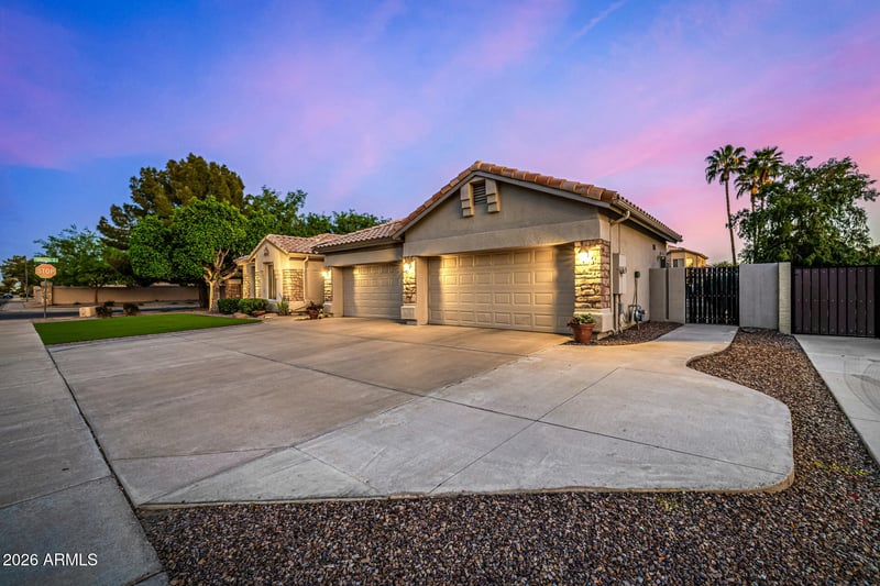 Listing details for 2187 Finley St, Gilbert, AZ 85296 : Welcome to 2187 E Finley St in Gilbert's highly sought-after Finley Farms. This immaculate home offers nearly 4,000 sqft of living space with 5 bedrooms and 3.5 bathrooms--perfect for growing or multi-gen living. Inside features tile, hardwood, and new carpet flooring, a cozy fireplace, and a rare finished basement ideal for a media room, gym, or guest space. Owner's suite situated on the main level and split from the other rooms. Multiple living areas provide flexibility for entertaining or working from home. Sitting on a large 0.36-acre lot, with large pool and plenty of space for activities. A true 4 car garage and tons of slab parking spaces great for entertaining. Located near Loop 202, parks, shopping, dining, and top-rated schools--this home offers space, location, and opportunity. You'll love the primary suite, boasting a lovely bay window, a 2nd fireplace, direct outdoor access, a walk-in closet, and a lavish ensuite w/dual sinks & a garden tub. Continue downstairs into the basement to discover a HUGE bonus room w/plush carpet, where you can spend quality time w/friends & loved ones. Finally, the expansive backyard includes a covered patio and a fenced pool w/a rock waterfall! Your new home is waiting for you, hurry and act now!