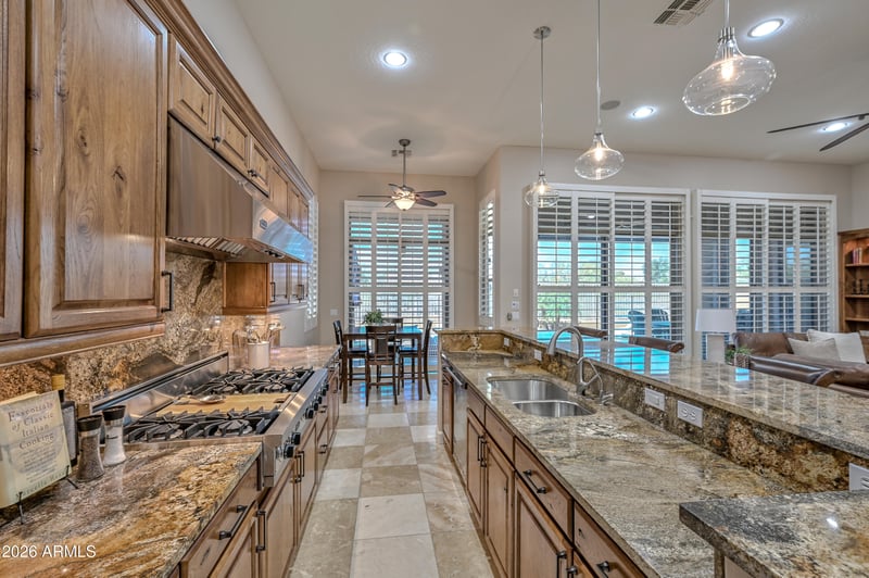 Listing details for 21914 36th Way, Phoenix, AZ 85050 : Rare 3 bed + 3.5 bath Solaria in the highly sought-after, award-winning community of Aviano at Desert Ridge--turnkey and highly upgraded throughout with new HVAC, resort-style backyard, and indoor-outdoor living. Immaculate, luxury home with 2,841 sq. ft., 3 bedrooms + office/den, and 3.5 baths. Open-concept floor plan with 12+ ft ceilings, rich flooring, plantation shutters, and 4 sliding glass doors for seamless indoor-outdoor flow. The Gourmet kitchen features Viking Pro appliances including refrigerator, 8-burner gas cooktop, double oven, hood, microwave, warming drawer, dishwasher, and wine refrigerator. The knotty alder cabinetry, granite countertops, and updated pendant lighting make this space shine. Luxurious primary suite with spa-like bath, en-suite secondary bedrooms, and private office. Energy-efficient upgrades include enhanced insulation, central vacuum, whole-home air purifier, Life Source water system and a soft water system.