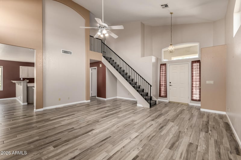 Listing details for 21961 69th Ave, Glendale, AZ 85310 : Introducing this well-maintained 3-bedroom gem, looking for its new homeowners! Discover a harmonious living & dining room that instantly feels like home, featuring soaring vaulted ceilings, wood-look tile flooring, custom paint, and ceiling fans throughout. Spotless kitchen is sure to delight, offering track lighting, abundant cabinetry, built-in appliances, a breakfast bar, a center island, and a breakfast nook that frames the outdoor oasis. A powder room is on the main level for convenience. Impeccable primary bedroom includes a private bathroom and a walk-in closet for easy organization. Spacious backyard provides a covered patio, paver seating area, and mature shade trees, creating a cool, relaxing escape. Hurry! This gem won't disappoint!