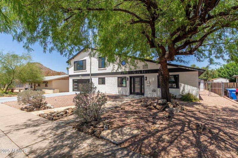 Listing details for 2210 Everett Dr, Phoenix, AZ 85022 : INVESTOR SPECIAL...COMPLETELY REMODELED & ALREADY LEASED. DO NOT DISTURB THE TENANTS. Charming Completely remodeled W/ newer roof, 4bed, 3bath, 2 master suites, beautiful new flooring, new windows, freshly painted in & out. All new plumbing, lighting, cabinets, countertops, stainless steel appliances, backsplash & tons of natural light. There are 3 bedrooms with 2 beautiful bathrooms downstairs, one being ensuite. Entire 2nd story is large master suite completely remodeled bath w/ separate shower & a soaking tub, large walk-in closet w/ a balcony boasting beautiful mountain views. The backyard has a large covered patio w/ fans, leading you out to a sparkling heated pool and spa all updates done in the last year. Fabulous walking trails abound. Huge lot w/ side yard & large storage shed.