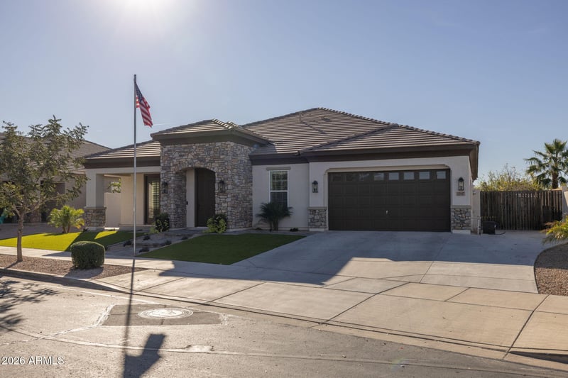 Listing details for 22147 Creekside Dr, Queen Creek, AZ 85142 : Looking for lots of bedrooms AND bathrooms? Then welcome to Creekside Dr., this floorplan offers great flex space with 4 & half bathrooms (3 are en-suite) & rooms that do double duty. Great set up for multi-generational living, multiple home offices, or a movie room that can be closed off (so the whole house doesn't have to hear it!) Heart-of-home kitchen overlooks a cozy fireplace & 20 foot slider open to your verdant backyard. Here there's plenty of real grass for play plus an Orange, Kumquat & Pomegranate tree. Back inside, you'll have nothing to do but move in: new carpet everywhere, fresh paint through out the interior, even a brand new spa like bathtub in your primary suite. Exterior painted & turf + professional landscaping out front in 2025. Truly, all this home is missing is you!