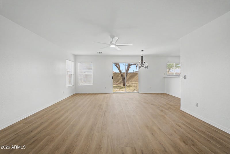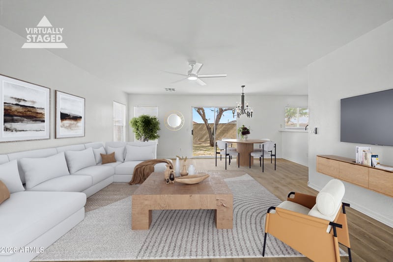 Listing details for 22291 Mesquite Dr, Buckeye, AZ 85326 : Beautifully updated 4-bedroom home offering 1,831 sq ft of comfortable living in a growing Buckeye community. This home shines with major recent upgrades, including a new roof, fresh interior and exterior paint, new quartz countertops, stainless steel appliances, and all new flooring featuring luxury vinyl plank and carpet--delivering a truly move-in ready experience. The inviting open-concept layout creates a seamless flow between the kitchen and living area, perfect for both everyday living and entertaining. The upgraded kitchen features quartz countertops, stainless steel appliances, ample cabinetry, and a breakfast bar, combining style and functionality. Owners suite is on the main floor of the home and upstairs living includes a large loft and bedrooms.