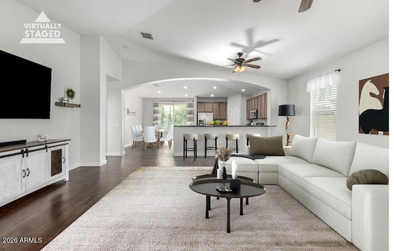Listing details for 22385 Via De Olivos --, Queen Creek, AZ 85142 : Buyers can enjoy up to a 1% rate buydown for the first year using our preferred lender. Beautiful Queen Creek home with a rare private detached casita, perfect for in laws, guests, or a quiet home office. The casita includes one bedroom & a private bathroom, offering flexibility that is hard to find at this price point. This home sits on one of the best lots in the neighborhood, next to open green space with view fencing & no neighbors behind. A custom iron gate welcomes you into a private courtyard with a seating area & pergola, creating a peaceful space to relax while overlooking the casita. The main home offers 3 bedrooms & 2 baths with luxury plank vinyl flooring throughout & carpet in the bedrooms. The heart of the home is the spacious family room that opens to the kitchen, offering tons of counter space with 42'' upgraded maple cabinets, granite countertops, large island & a separate breakfast bar, making it ideal for everyday use & hosting guests. Stainless steel appliances, pantry, & also a reverse osmosis system to enjoy. The primary suite includes a walk in closet & private bathroom with dual sinks & a large walk in shower with glass enclosure. Additional features include an inside laundry room, 2 car garage with climate control AC, 6 circuit generator back-up panel, water softener, ceiling fans in every room, & blinds throughout. Step outside to your beautiful backyard with covered patio, paver patio space, synthetic turf & view fencing with no neighbors behind. The main home is 1,813 square feet & the detached casita is 247 square feet. Homes with a private casita in this location are very hard to find under $550,000. Located in a great Queen Creek community that is close to parks, schools, dining & only a 5 minute drive to the Queen Creek marketplace.