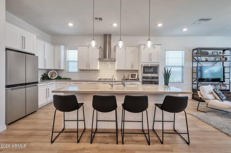 Listing details for 22696 Bonanza Way, Queen Creek, AZ 85142 : Perfectly located--this beautifully upgraded 4-bedroom home in Queen Creek puts you just seconds from Frontier Family Park and minutes to everything you need. Offering over 3,000 sq ft, this 2022-built home features a modern open floor plan with spacious living areas, a dedicated office or den, and a convenient downstairs bedroom with en-suite bath--ideal for guests or multi-generational living. The kitchen flows seamlessly into the main living space and out to a covered patio with gas fireplace overlooking a professionally landscaped backyard, perfect for relaxing or entertaining. Upstairs, enjoy a versatile loft along with three additional bedrooms, including a spacious primary suite. Situated in the desirable Madera community, this home is within 3 miles of Route 24, Queen Creek Marketplace, and directly across from the new Fry's,making shopping, dining, and commuting incredibly convenient. Low HOA and access to parks, walking paths, and top-rated Queen Creek schools complete the package.
