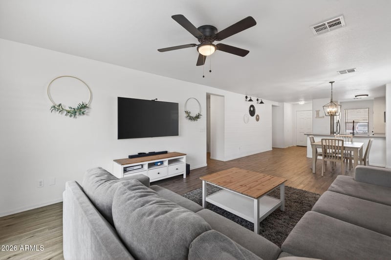 Listing details for 2270 Kristina Ave, Queen Creek, AZ 85144 : Welcome home to this beautifully updated 4-bedroom, 2-bath residence offering modern style and everyday comfort. The open-concept floor plan is filled with natural light and features a newly renovated kitchen complete with white shaker cabinetry, quartz countertops, farmhouse sink, and stainless steel appliances —perfect for both entertaining and daily living. Brand-new LVP flooring flows throughout the home, adding durability and a clean, contemporary look. Step outside to a low-maintenance backyard with pavers and turf, ideal for relaxing or hosting gatherings. Additional highlights include an RV gate and access to community amenities such as the workout facility, heated pool, basketball courts and parks. Conveniently located near shopping, dining, and everyday essentials. An excellent opportunity for a first-time buyer or those looking to downsize without compromising on style or location.