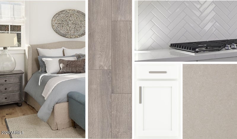 Listing details for 2272 Galloping Horse Dr, San Tan Valley, AZ 85140 : Discover this brand-new 1,949 sq. ft. home in the picturesque Wales Ranch community, featuring 3 bedrooms, 2.5 bathrooms, and a versatile den. The thoughtfully designed layout includes a cozy dining nook and an additional den, perfect for flexible living or work-from-home needs. The home boasts the gorgeous Timeless Collection with white cabinetry, quartz countertops, a stylish backsplash, and wood-style ceramic tile flooring that flows seamlessly throughout. A 4-panel sliding glass door leads to a covered patio and spacious private backyard, ideal for outdoor relaxation. The primary suite offers a peaceful retreat with double sinks, an enlarged shower, an extra linen closet, a private water closet, and a walk-in closet. A conveniently located half bath provides privacy for guests. Residents of Wales Ranch enjoy access to amenities including pickleball and basketball courts, a scenic lake, and walking paths with breathtaking views.