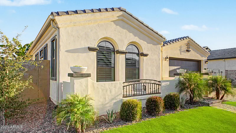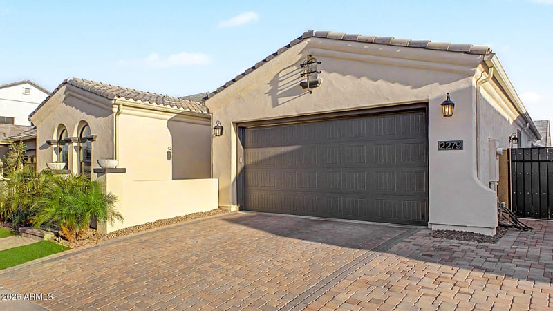 Listing details for 2279 Warbler Rd, Gilbert, AZ 85297 : Experience Mediterranean Luxury in the heart of Gilbert. Welcome to your own private Spanish-inspired villa, nestled within the prestigious gated neighborhood of Stratford. This meticulously reimagined north-facing, single level home showcasing over $500k in designer upgrades, blends timeless sophistication with modern indulgence. Step inside to discover 9.5'' wide European White Oak engineered hardwood floors and 7'' custom baseboards that flow seamlessly throughout the home. The gourmet kitchen is a chef's dream--featuring custom Slim Shaker cabinetry in a light mist color, Taj Mahal Quartzite countertops, a 60'' Italian dual-fuel double oven range, and dual-column side-by-side refrigerator and freezer. Entertaining is effortless with wine and beverage fridges thoughtfully placed in the butler's pantry, home office and even the primary suite. The Great Room invites you to unwind with a custom entertainment center topped in sleek soapstone, a 16-foot floor-to-ceiling sliding glass door, and motorized shade screen that transforms your covered patio into a cozy retreat perfect for crisp fall mornings or serene sunset evenings. The Primary Suite is a sanctuary of comfort and refinement, featuring plush upgraded carpet, an elegant built-in dresser with nightstands, and a spa-worthy bath adorned with marble tile flooring, a standalone soaking tub, and custom vanities including a built-in Bosch espresso machine and an additional wine fridge for the ultimate indulgence. Fourth bedroom is currently being used as a home office with gorgeous, custom built-in desks, shelves and plenty of storage cabinetry. Cabinets can be easily removed and turned back into a 4th bedroom. Every guest will feel pampered with a designer guest bathroom that showcases a custom scalloped cement sink, Arto "Winslet" Spanish brick floors, and a handcrafted vanity that exudes artisanal charm. Step outside to your private resort-style backyard, complete with a sparkling quartz-finished pool, oversized baja shelf, and Grecian limestone pavers. Gather around the grand wood-burning fireplace in the outdoor dining area, complemented by a built-in BBQ, Blackstone griddle, and soapstone counters. Lush "Hollywood hedges" frame the space, offering great privacy, while the side yard garden provides fruit bearing orange, lemon and key lime trees and garden beds for seasonal produce. Enjoy the nearby freeway access, shopping, dining and award winning Gilbert Regional Park. The Stratford community is fully gated and features a large greenbelt, community park, fireplaces/fire pits, bbqs, basketball court, a pickleball court and community offers several HOA sponsored parties/events. Don't miss out on this opportunity, because this one-of-a-kind home is sure to check all your boxes! You will never want to leave your own personal paradise!