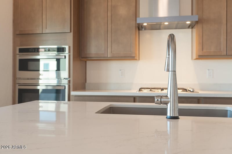Listing details for 2294 Foremaster Rd, San Tan Valley, AZ 85140 : Spectacular, new, two-story home located in the amenity filled and private community of Luna at Soleo! The designer upgraded home features 5 bedrooms, 3.5 bathrooms, a loft, outdoor living areas, an attached 3 bay tandem garage, and more. The spacious kitchen includes a GE 30'' gas cooktop appliance package with a combo double oven and designer style hood, a 18'' recycle center, a boxed in refrigerator opening, a center island, Quartz countertops, custom backsplash, and a Delta Essa Touch faucet in artic stainless. Upgraded Benton Birch Quill cabinets and soft close drawers throughout the home, tile flooring, carpet at the bedrooms, two sinks in bathroom 3, pre-plumbing for a laundry sink, and pavers at the driveway and front walkway!