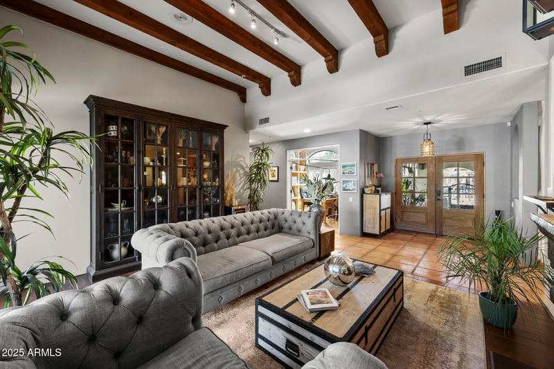 Listing details for 22996 91st Way, Scottsdale, AZ 85255 : Nestled in the sought-after Arizona desert landscape Pinnacle Peak Vista, this gorgeous oasis w/ a newly refinished pool is sure to impress. Adorned w/ mature landscape, this home has a flexible den/office in addition to 3 bedrooms with brand new carpet, 3 full baths & 3 car garage. Serene private courtyard adds charm! Fabulous interior promotes warm ambiance & cozy feel complemented by high ceilings of grandeur. Floor plan features separate living & family rooms, each equipped w/ a inviting fireplace. The impressive kitchen boasts built-in appliances, a pantry, ample cabinetry, & an island w/breakfast bar. The primary bedroom has outdoor access and an ensuite w/ dual sinks, separate tub/shower, & walk-in closet. Enjoy a natural desert wash/preserve that leads to this place to call home. The backyard is an entertainer's dream! Saltillo/cool deck patio, built-in BBQ with refrigerator and sink, sit-down bar, and a built-in gas fireplace. Relax in the spa with waterfalls or enjoy the beautiful heated pool. The 2 indoor fireplaces are wood burning and a outdoor pass-though gas fireplace is fed by a buried 250gal propane tank.