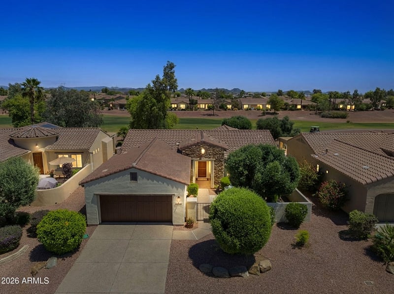 Listing details for 23019 Giovota Dr, Sun City West, AZ 85375 : Here's a great chance to own a mid-size home in Corte Bella right on the lush green fairway! 1837 Square foot San Ysidro plan sits on the 6th fairway and has an east-facing backyard, perfect for enjoying Arizona's colorful sunrises. The extended patio is ideal for outdoor gatherings. Inside, you'll find an open great room and a spacious island kitchen with a gas range and granite counters. There are two large bedrooms and a den with a view of the course. Tile floors run throughout the home except in the bedrooms. A front courtyard adds curb appeal and privacy. The two-car garage is extended and has an epoxy-coated floor. This home is in a great spot within the community. Grocery stores are just a golf cart ride away! Corte Bella has 2 bars and restaurants inside the gates. This vibrant boutique Del Webb community offers golf, pickleball, tennis, a fitness center, a heated pool, and a day spa. A social director plans fun social activities, including concerts and excursions.