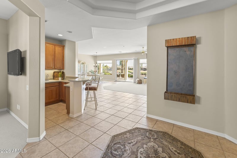 Listing details for 23029 Las Positas Dr, Sun City West, AZ 85375 : EXCEPTIONAL golf course views anchor this well-maintained Mirada model in the gated community of Corte Bella. Ideally located on a peaceful street with desirable east-facing 13th fairway exposure, the home enjoys beautiful morning light and shaded afternoons—perfect for year-round outdoor living. Thoughtfully cared for and move-in ready, it provides a solid foundation and an excellent opportunity for personalization. The open-concept Mirada floor plan offers new carpet and new interior paint, generous space for entertaining, with a split-bedroom layout that ensures privacy for owners and guests. Large bedrooms create comfortable retreats, while the roomy garage features extra cabinetry for storage along with a dedicated golf cart garage. Outside, the back patio invites you to begin your day with stunning sunrises and then unwind during tranquil evenings overlooking the fairway. There are amenities GALORE in the PREMIER gated community of Corte Bella including golf, tennis, swimming pool, spa, pickle ball, and two restaurants, with a variety of clubs and activities to meet a large array of interests and social opportunities!