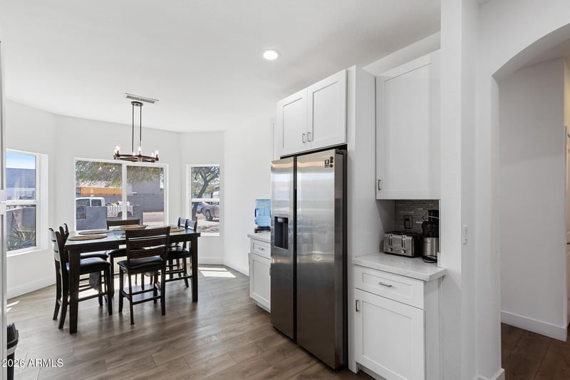 Listing details for 2314 Maricopa St, Phoenix, AZ 85009 : Stylish interiors, spacious layout, and a large lot full of potential! This beautifully maintained 4 bed, 2 bath home offers 1,706 sqft of living space. Featuring cool-toned interior paint and sleek wood-look flooring, the home feels modern, bright, and move-in ready. Natural light fills the home through large windows and a charming front bay window, creating an inviting atmosphere. The spacious kitchen is equipped with plenty of white shaker cabinets and offers room for a formal dining area. Step outside to a low-maintenance yard on a large lot, ready for your vision - whether that's adding a pool, creating a garden, or expanding your outdoor living space. With modern finishes, a functional layout, and room to grow, this home offers both comfort and opportunity!