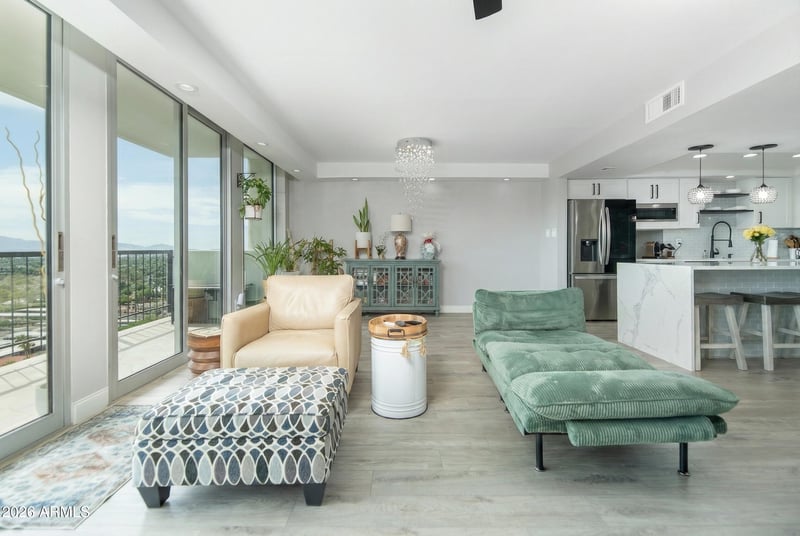 Listing details for 2323 Central Ave #1702, Phoenix, AZ 85004 : Perched on the 17th floor of the iconic Regency on Central, this fully renovated residence delivers unobstructed, front-row views of the Heard Museum and lush Central Phoenix skyline--stretching across a canopy of green that feels anything but desert. Inside, the unit has been thoughtfully and extensively upgraded. The kitchen is designed for both daily living and entertaining, featuring a large island with seating, abundant storage, and clean, modern finishes. Raised ceilings with integrated LED lighting enhance the open, contemporary feel. All windows and doors have been replaced with top-of-the-line, dual-pane, low-E systems with smooth-glide operation--providing superior energy efficiency, sound insulation, and long-term value (these windows and doors are a $60,000 investment! (c Both bedrooms and bathrooms have been fully updated, with the primary bedroom featuring upgraded closets with extensive storage; while the guest bedroom features a wall of closets and enough room to double as a home office. Both have stunning white shutters and views galore! This home includes custom cabinetry and storage in the hallways with upgraded in-unit laundry as well. Plus, there is storage downstairs! And for the Icing on the Cake? The expansive balcony becomes a true extension of the living space--ideal for morning coffee, sunset views, and year-round indoor/outdoor living. The Regency offers full-service, resort-style amenities including a heated pool and spa, fitness center, resident lounge (ROC Room), lending library, and beautifully maintained grounds including private green space and dog park. The building is professionally managed with 24/7 staff, including front desk, engineering, and porter services. Additional highlights include gated, secured underground parking, private storage, and HOA dues that cover major utilities including AC, heat, water, sewer, and building insurance. Financing is available, adding flexibility for buyers in a market where many high-rises require cash. As a historically designated building, owner-occupied units may also qualify for significant property tax reductions--often close to 50%. This is true lock-and-leave living with meaningful upgrades already completed--positioned in one of Central Phoenix's most established and well-managed luxury high-rises.