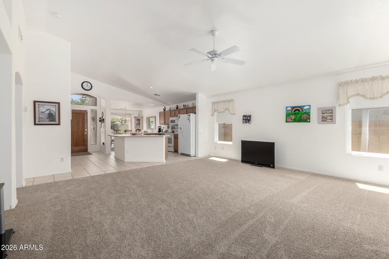 Listing details for 2328 Tierra Alta Cir, Mesa, AZ 85207 : Located on an interior lot in the gated Boulder Mountain community, this move-in ready home in East Mesa offers a functional layout, recent upgrades, and low-maintenance living in a desirable setting. The split great-room floor plan features vaulted ceilings, tile flooring, brand-new carpet, & silhouette window shades, creating a bright & comfortable living space. Major updates include a new roof (2024), new windows (2021), and AC unit (2015)--providing peace of mind for future homeowners. The kitchen includes a breakfast bar, island, pantry, and smooth-top range with built-in microwave, offering both functionality and everyday convenience. The spacious owner's suite features vaulted ceilings & a bay window, creating a relaxing retreat. Step outside to a covered patio with ceiling fan overlooking a large, low-maintenance landscaped backyard with outdoor fireplace--ideal for relaxing or entertaining year-round. Additional highlights include a 2.5-car garage for extra storage or workspace and a soft water loop. If you're searching for a gated community home in Mesa with recent updates, a low-maintenance yard, and move-in ready condition, this Boulder Mountain property offers comfort, convenience, and value.