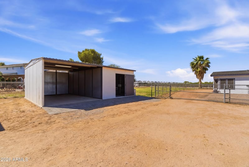 Listing details for 23317 180th St #-, Gilbert, AZ 85298 : ''LAND!! HORSE PROPERTY! ''Buy land, they're not making it anymore.'' - Mark Twain. Welcome to a rare opportunity to own almost 2.5 acres of IRRIGATED HORSE PROPERTY that perfectly blends country living with city conveniences. This beautiful property comes with a horse barn with 7 stalls, a dedicated tack room, and plenty of space to ride, roam, and enjoy the Arizona lifestyle. This comes with an updated manufactured home, you'll find 2.5 fully remodeled bathrooms, fresh interior paint and an updated feel throughout. Step outside and take in breathtaking Arizona sunsets from your own private slice of LAND - something that simply can't be replicated! Whether you are an equestrian enthusiast or just craving space and serenity, this property delivers the BEST of both worlds!' 3rd bedroom is currently a den/alcove that could be made into a 3rd bedroom.