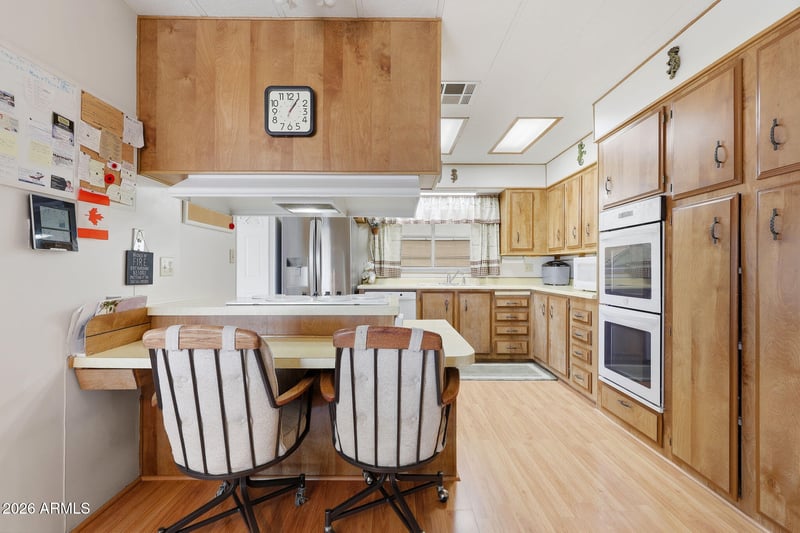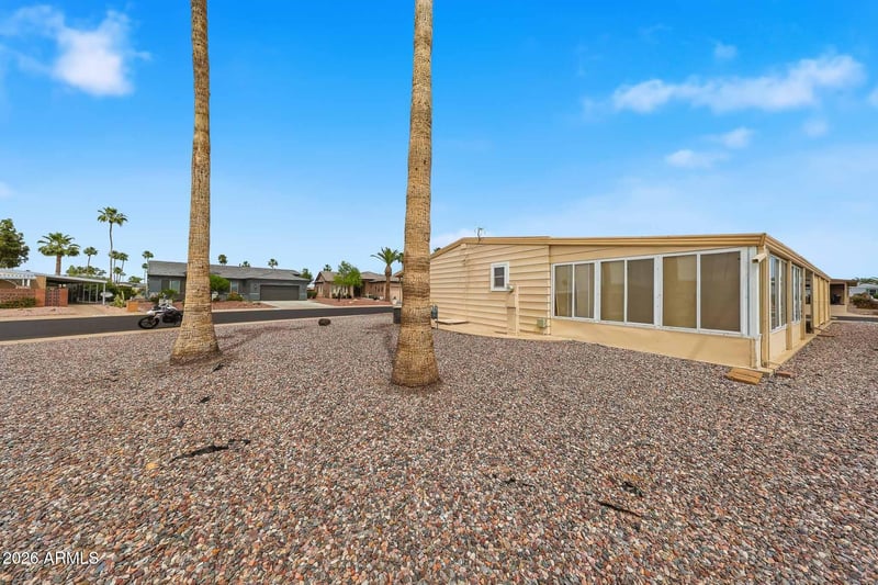 Listing details for 2347 Nicklaus Dr, Mesa, AZ 85215 : Must see financeable property in popular active adult golf community in NE Mesa! Situated on a large corner lot, this well maintained home is ready for primary occupancy, vacation owners or investment!! Large kitchen with reach-in pantry, plentiful cabinets, small island, some new appliances, lots of counter space and even a kitchen window!! Love to entertain? Inside, find a large living space, light filled with your new windows and sliding glass door. Remove the attached buffet and make the dining room even larger than it already is. 2 bedrooms and a laundry/office space finish out the interior. There is an attached drive through golf cart garage/shed and a large screened in porch located off the carport. Enjoy the low $80/month HOA and plentiful amenities in this great community.