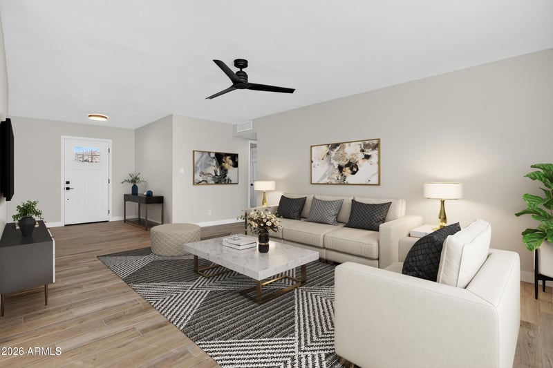 Listing details for 2355 Waltann Ln, Phoenix, AZ 85023 : ***BEAUTIFULLY & FULLY REMODELED***This Move-in ready, 3 bd / 2 bath, single-level home is located in a QUIET, North Phoenix neighborhood with NO HOA and has 2 car-garage~A FULLY-UPDATED home, priced-competitively for the area is definitely a RARE-COMBO~OPEN floor-plan with BRAND-NEW features throughout: Exterior/interior paint, dual-paned windows, MODERN flooring, UPDATED bathrooms and laundry~Kitchen features WHITE-SHAKER, SOFT-CLOSE cabinetry, QUARTZ counter-tops, and STAINLESS-STEEL, appliances is very on-trend~Floor-plan features a FUNCTIONAL, OPEN-CONCEPT, living, dining and kitchen with a dedicated indoor laundry-space with FULL-SIZE washer/dryer~Primary-Suite includes, DUAL closets and EN SUITE bathroom with WALK-IN shower~ Backyard offers substantial outdoor space with LARGE covered-patio, storage-shed and SEPARATE workshop~Landscaping awaits your personal-touch~IDEAL location is situated with convenient access to major freeways (I-17, 101 and 51), making commuting a breeze~"HURRY" / "WILL go fast" - "PERFECT-STARTER home for first-time, home-buyers."
