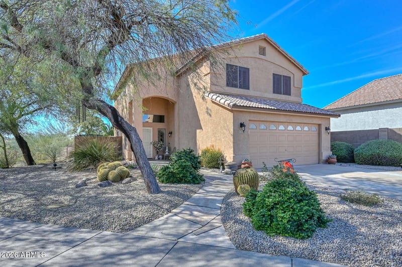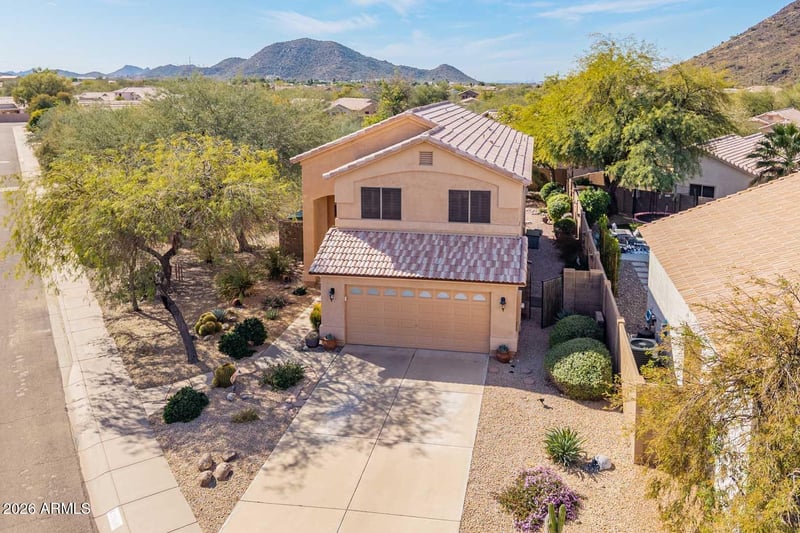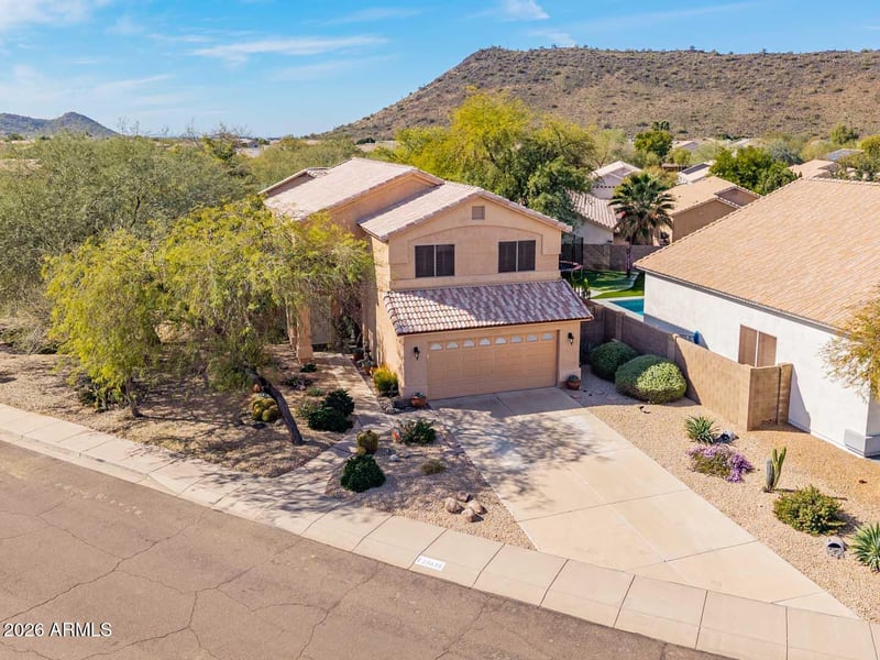 Listing details for 23638 22nd Way, Phoenix, AZ 85024 : Discover the perfect blend of comfort, style, & Arizona beauty in this exceptional home located in the highly sought-after Mountaingate North community. Situated on an oversized lot bordering the desert, this property offers breathtaking mountain views & a sense of privacy that's hard to find. Step inside to an inviting open floor plan filled w/ natural light, soaring ceilings, & timeless finishes. Plantation shutters, wood-look tile flooring, & a soft neutral palette create a warm, move-in-ready feel throughout. The beautifully updated kitchen is the heart of the home, featuring upgraded GE stainless steel appliances, granite countertops, a center island, & a generous pantry, ideal for both everyday living and entertaining. The spacious Great Room flows seamlessly into the eat-in kitchen, Formal Dining area, & Living Room, offering flexibility for gatherings both large and small. The Primary Suite is a true retreat, complete with a walk-in closet, dual vanities, a relaxing soaking tub, & separate shower. Outdoors, enjoy the best of Arizona living w/ low-maintenance front & backyard landscaping designed for both relaxation & entertaining. The lush backyard setting, paired w/ stunning mountain views, creates the perfect backdrop for alfresco dining & sunset evenings. Additional highlights include three secondary bedrooms, a cozy Loft w/ scenic views, a new roof (2021), and a new HVAC system (2023). Ideally located just minutes from Desert Ridge, top dining, shopping, & entertainment, w/ easy access to Loop 101 & SR 51. This home truly has it all.