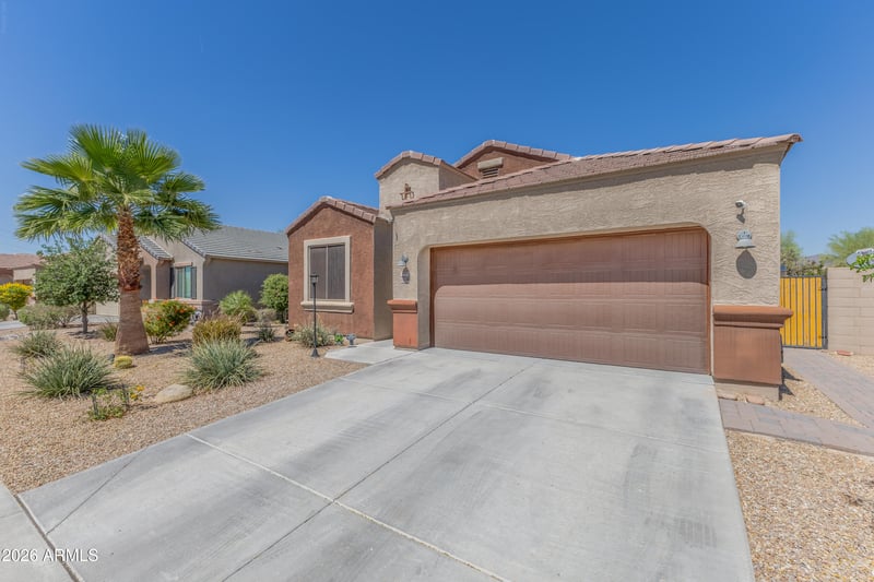 Listing details for 23754 Hess Ave, Buckeye, AZ 85326 : A fully insulated air-conditioned garage with Epoxy floors sets a luxury tone from the moment you arrive, elevating this home far beyond the ordinary. The residence opens into a beautifully flowing interior, where a chef-inspired kitchen features granite counters, stainless steel appliances, an island, and upgraded cabinetry. The great room expands through double sliding doors into a refined indoor/outdoor living experience. An extended alumawood patio, pavers, and lush artificial turf create a private, low-maintenance retreat with no neighbors behind. The primary suite offers a spa-style walk-in shower and dual sinks, while a dedicated laundry room adds convenience. Located within walking distance of the elementary school & park, this home blends comfort, elegance, and effortless living.