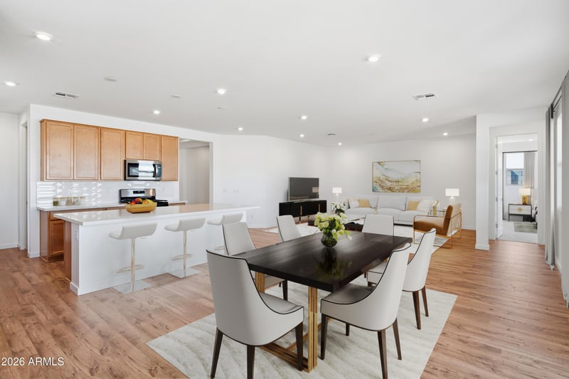Listing details for 23934 Carver Dr, Buckeye, AZ 85326 : Welcome to our beautiful Bartlett home located in the heart of Buckeye. This stunning home offers 4 bedrooms, 2 bathrooms, and a dedicated office, providing ample space for comfortable and flexible living. The primary suite boasts a large walk-in closet, double sinks, with a separate tub and walk in shower, while the additional bedrooms provide plenty of room for family or guests. The backyard is perfect for entertaining with its extended patio, offering plenty of room for gatherings and relaxation. Inside, the 2,166 sq. ft. layout features an open modern kitchen showcasing quartz countertops, a designer tile backsplash, and 42-inch cabinets. This exceptional home also includes SOLAR, delivering improved energy efficiency and long term savings.
