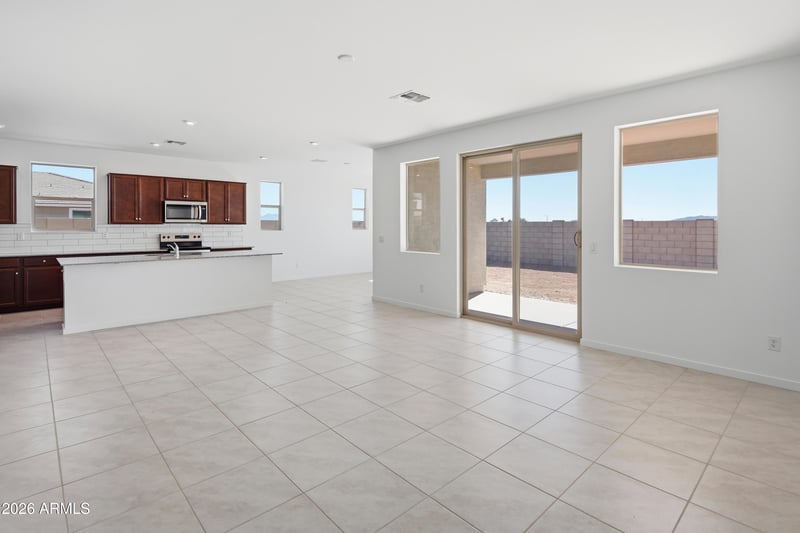 Listing details for 23989 Carver Dr, Buckeye, AZ 85326 : This beautiful single story Crescent plan features 4 spacious bedrooms, 2.5 bathrooms, and a 3 car tandem garage, offering the perfect blend of comfort and versatility. This beautiful open floorplan showcases, the modern kitchen with dark wood cabinetry, beautiful granite countertops, a stylish tile backsplash, and a dedicated dining room ideal for gatherings. Set on a desirable north facing lot, this home provides added privacy and curb appeal. Even better, it comes equipped with SOLAR, delivering improved energy efficiency and long term savings.