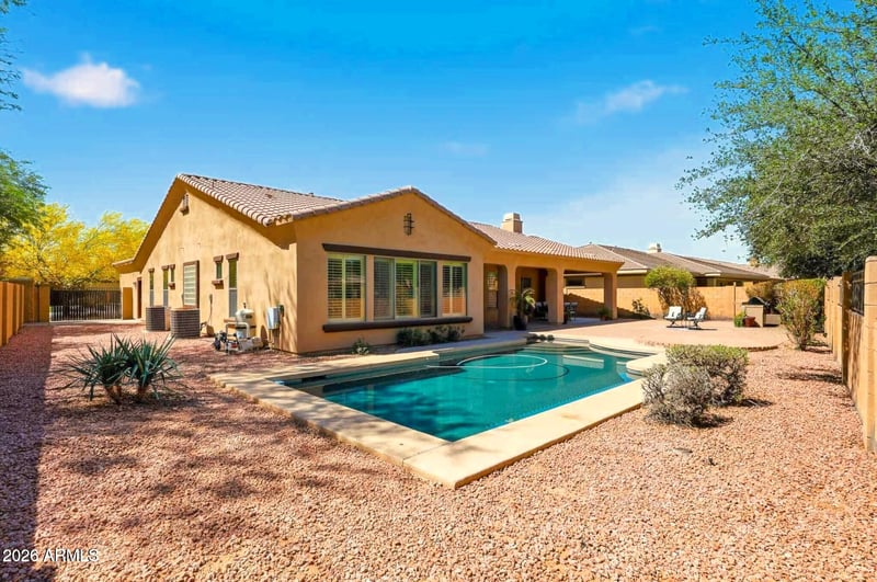 Listing details for 2419 141st Ln, Goodyear, AZ 85395 : Some homes are built for square footage. Others are built for living. This Palm Valley home leans all the way into the Arizona lifestyle, where evenings end in the pool, weekends mean backyard gatherings, and space actually works for the way families live. Set on a corner lot in one of Goodyear's most established golf communities, the home offers the kind of layout buyers consistently look for: open gathering spaces, a split floorplan for privacy, and a great room fireplace that anchors the heart of the home. Fresh interior paint gives the home a clean starting point, while tile in high-traffic areas keeps daily life simple and low maintenance. The kitchen and living spaces flow naturally together, making the home ideal for entertaining or everyday family rhythm. Out back, the real Arizona magic shows up: a private pool, paver patio, and low-maintenance landscaping designed for year-round outdoor living. Built by TW Lewis and located just minutes from I-10, golf, shopping, dining, and Estrella Mountain Community College, this home combines Palm Valley lifestyle with practical ownership ease. Space. Pool. Established neighborhood energy. Exactly what many buyers are hoping to find in the West Valley.