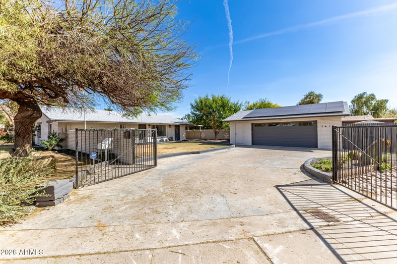 Listing details for 2419 Shaw Butte Dr, Phoenix, AZ 85029 : NO HOA and PAID-OFF SOLAR PANELS--enjoy energy savings, efficiency, and true ownership freedom. This nicely remodeled home showcases all-new flooring, a beautifully updated kitchen and bathrooms, modern light fixtures, and fresh interior paint throughout. The bright, open kitchen is a standout feature, complete with sleek cabinetry, stylish backsplash, and a spacious island, perfect for everyday living and entertaining. The upgraded fireplace creates a warm focal point in the living space, while dual-pane windows enhance comfort and efficiency. All appliances are included, making this home truly move-in ready. Extensive Plumbing Upgrades including Sewer Line Replacement for added peace of mind! Situated on a large corner lot with mature trees, the property offers both charm and functionality. The gated circular driveway and detached garage provide ample parking, added privacy, and secure access, ideal for multiple vehicles, storage, or flexible use. A covered outdoor area adds valuable shaded space for relaxing or entertaining year-round. Conveniently located with quick access to the freeway, this home combines thoughtful upgrades, practical features, and everyday comfort in one inviting package.