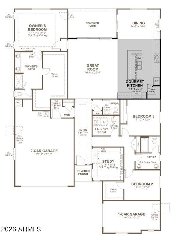 Listing details for 24190 172nd Dr, Surprise, AZ 85387 : Discover this dynamic Pinecrest home, ready for quick move-in! Included features: a covered front porch; an elegant study off the entry; a tranquil great room with multi-slide patio doors; a gourmet kitchen boasting 42'' cabinets, quartz countertops, stainless-steel appliances, a large island, a walk-in pantry, and an adjacent dining area; a lavish primary suite showcasing an oversized walk-in closet and a private bath with double sinks; convenient laundry and powder rooms; two secondary bedrooms with a shared bath; and a cheerful covered patio. This home also offers soaring 10' ceilings throughout, a tray ceiling at the entry, 9'' x 35'' stone tile flooring, cultured marble bathroom countertops, ceiling fan prewiring in select rooms, front yard landscaping, and concrete pavers at the driveway and walkway.