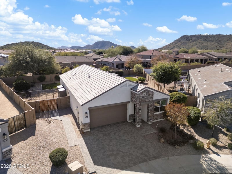 Listing details for 24214 23rd Way, Phoenix, AZ 85024 : Resort living meets everyday comfort in this beautifully upgraded 2019 home, set on a premium cul-de-sac lot with N/S exposure. Designed for indoor-outdoor living, the backyard features a Pebble Tec pool with travertine decking, artificial turf, landscape lighting, built-in BBQ, built-in fire pit, and an extended patio with dual pergolas, solar sunscreen and mounted TV screen. Great room features a 12-foot Arcadia door with Hunter Douglas power blinds. The kitchen shines with upgraded stainless steel appliances and quartz countertops while the oversized laundry room doubles as a pantry with abundant shelving and cabinetry. The primary suite offers a spa-like bath with an extra-large walk-in shower, custom barn door, and a custom-built closet system. Guest bath has been remodeled by Jazzi Bath. This smart home is a rare combination of a resort-style backyard, premium lot, and modern upgrades and truly stands apart.