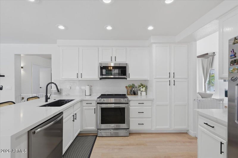 Listing details for 2442 Augustine Cir, Mesa, AZ 85209 : A private pool, a half basketball court, and a fully updated interior--this is the kind of setup buyers are always looking for but rarely find. Set in Superstition Springs Village, this 5-bedroom, 3-bath home offers 2,352 sqft of well-designed space with room to live, work, and entertain--including a full bedroom and bathroom on the main level, ideal for guests or multi-generational living. Inside, you'll find brand new vinyl flooring throughout and a remodeled kitchen featuring quartz countertops and clean, modern finishes that give the home a fresh, move-in ready feel. Out back is where this home separates itself--a private pool and half basketball court create a space that's built for both relaxing and entertaining. Located just minutes from the US-60 and Loop 202 with quick access to shopping, dining, and everyday conveniences.