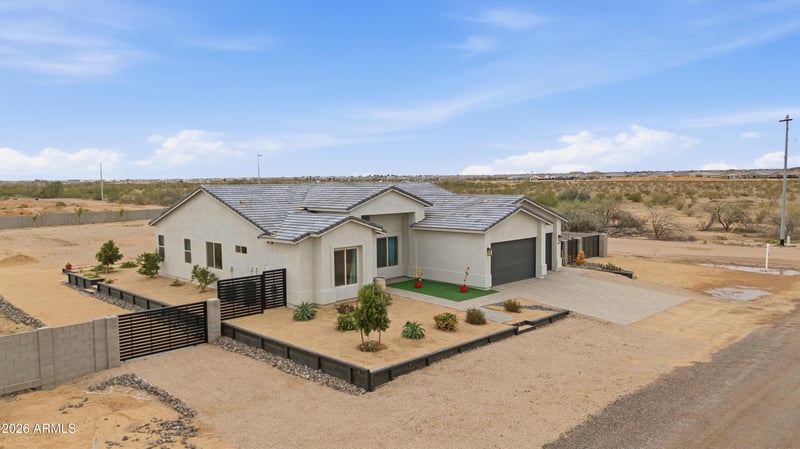 Listing details for 24572 157th Dr, Surprise, AZ 85387 : Location! Location! Amazing property located near 163rd Ave and Happy Valley Rd. Close to the 303, Surprise corridor and TSMC. This acre + property includes 3 custom RV gates. Perfect for your toys or equipment that needs easy access in and out. With over an acre you have plenty of room for an RV garage, casita, or guest home. Property has a double septic system and upgraded 400amp panel for future additions. This contempoary luxury home has a gourmet kitchen white shaker cabinetry, tile backsplash, high-grade quartz. The owners suite is increadible with a barn door, separate vanities, soaking tub, snail shower and wait unitl yous see the closet..it was originally designed as a separate bedroom. Electrical and irrigation surround the property. Located in a upscale neighborhood. San Ysidro road is scheduled to be paved to 158th Ave during future development.