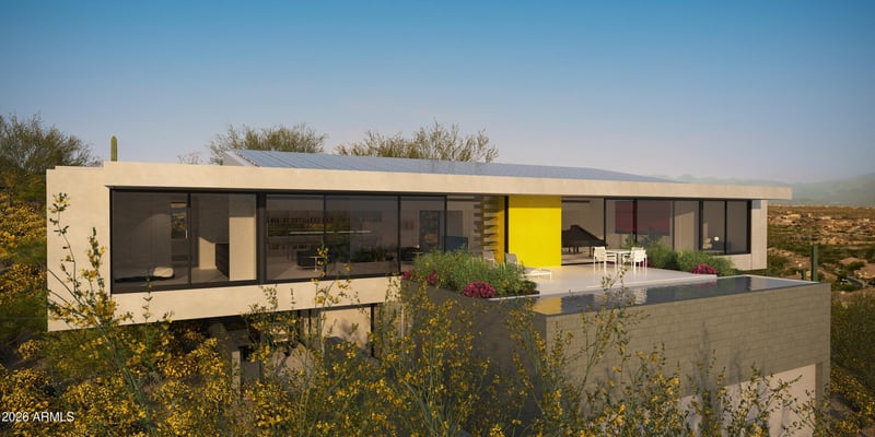 Listing details for 24988 114th St, Scottsdale, AZ 85255 : TO BE BUILT. Own a Modern Masterpiece nestled in the boulder outcroppings on Troon Mountain. Designed by Internationally acclaimed architect Michael P. Johnson / retired Taliesin Professor of 28 years. Located on the Southeast Side of Troon Mountain this 5000 sq. ft. home is sculpted by the desert & designed for light. 2 level home with an elevator. The lower level has 2 primary suites, access to the 4 car garage & elevator. The main living area has 2 primary suites that are cantilevered above the private patios of lower level guest suites. The great room plan has open space for dining, home office & conversation seating areas. 38' lap pool with views to the Rio Verde Valley & McDowell Mountains. Full outdoor kitchen & covered dining terrace. ALSO SEE MLS 6944519. Taxes on vacant land.