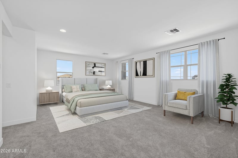 Listing details for 25174 169th Ave, Surprise, AZ 85387 : What's Special: 1st Floor Primary Bedroom | Dedicated Study | Covered Patio | Deep Lot | Backs to Greenbelt. New Construction - Ready Now! Built by America's Most Trusted Home Builder. Welcome to the Victory at 25174 N 169th Avenue in Artisan at Asante Encore Collection! This new home offers a welcoming porch, bright foyer with flex room and powder bath, and an open great room with a gourmet kitchen and quartz waterfall island. The main-level suite adds privacy, with upstairs bedrooms, tech spaces, a loft, and a 2-car garage. Additional Highlights Include: Gourmet kitchen, super shower at primary bath, multi-slide door at great room, double doors at flex, and pavers at front porch, walk, and driveway. Virtually staged photos are for representative purposes only.