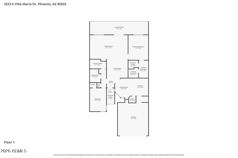 This beautiful 2 beds 2 baths home is located at 2523 Villa Maria Dr, Phoenix, AZ 85032 and is listed for sale at $375,000.00. This home was built in 1985, contains 1433 square feet of living space, and sits on a 0.12 acre lot. This residential home is priced at $261.69 per square foot.