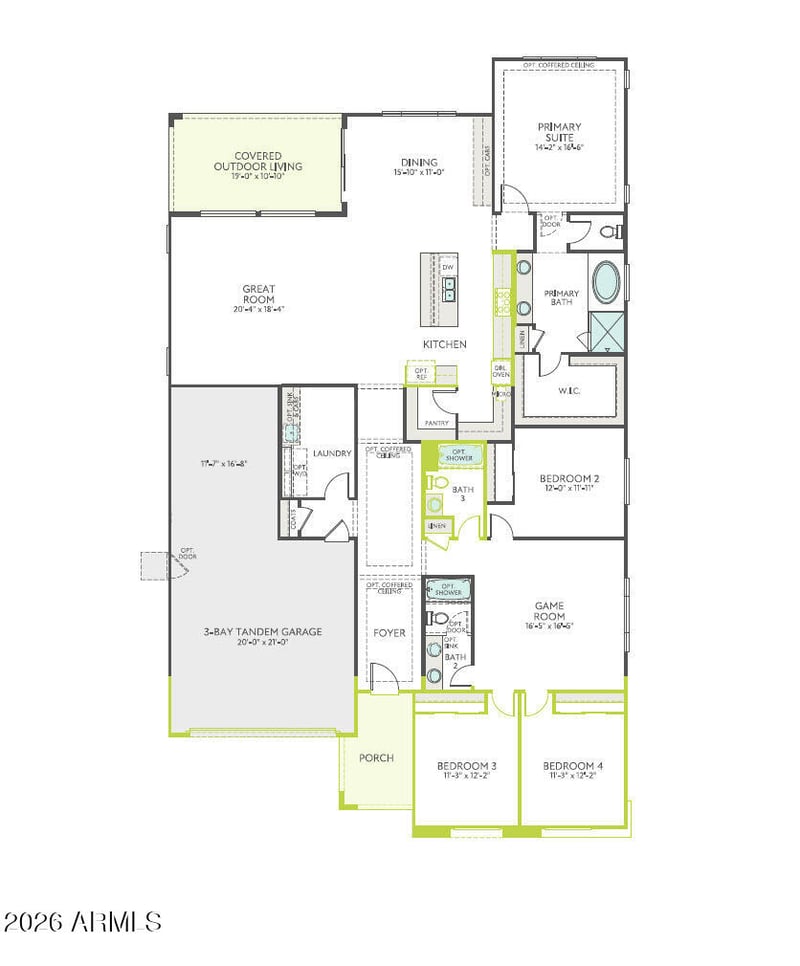Listing details for 2533 Alfonso Dr, San Tan Valley, AZ 85140 : Experience refined single-story living in this Tri Pointe Homes residence offering 2,855 sq ft, 4 Bedrooms and 3 Baths. The open-concept design features a 16' center pull slider at the Great Room for seamless indoor-outdoor living. The designer Kitchen showcases white shaker cabinetry with stacked uppers, soft-close doors and drawers, quartz countertops, boxed-in refrigerator, 30'' gas cooktop with hood, wall oven/micro combo, matte black Delta faucet and Blanco single-bowl sink. The Primary Bath features a 90'' ceramic tile surround. Tile plank flooring enhances the Entry, walkways and wet areas, with added pre-plumbs for soft water loop and laundry sink.