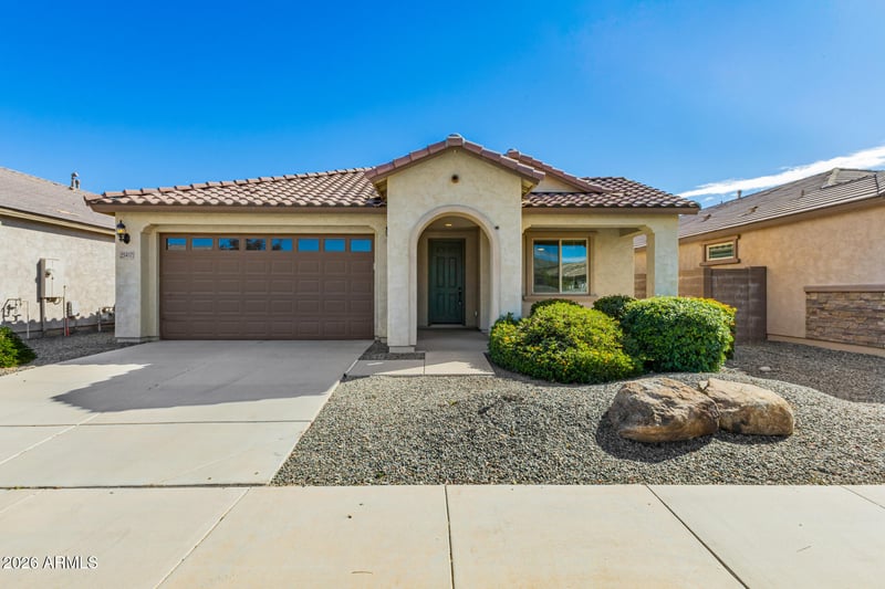 Listing details for 25417 229th Pl, Queen Creek, AZ 85142 : Welcome to this beautiful home in Harvest Queen Creek! A manicured landscape, 2-car garage, & a cozy front porch are just the beginning. The fabulous interior features tons of natural light, neutral palette, tall ceilings, tile flooring in common areas, and soft carpet in bedrooms. You'll love the semi-open layout, which perfectly balances privacy & connectivity! The impressive eat-in kitchen boasts granite counters, ample wood cabinetry, recessed lighting, a walk-in pantry, an island w/breakfast bar, and SS appliances w/cooktop gas. Versatile den just off the front entry! Large main bedroom has a spotless bathroom with dual sinks, sit-down shower, & a walk-in closet. Outback, you have a covered patio, artificial turf, and well-laid pavers for a great outdoor living space. Make this yours!