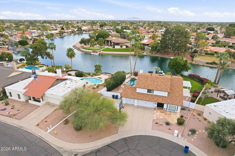 Listing details for 2543 Madero Ave, Mesa, AZ 85202 : Stunning Lakefront Property in the Dobson Ranch Lake Community of Laguna Shores! This exceptional 4-bedroom, 3-bathroom home with a 3-car garage is nestled on a spacious 13,000+ sq ft cul-de-sac lot ON the lake in Dobson Ranch, offering breathtaking panoramic water views and spectacular sunsets from the family room, kitchen, and multiple bedrooms. The chef's dream kitchen features stainless steel appliances, quartz countertops, updated cabinetry, a wine refrigerator, and generous space for entertaining. Step outside to your private backyard oasis complete with a sparkling pool with waterfalls, boat dock, RV gate, and a large grassy area--perfect for embracing true waterfront living. The spacious primary suite offers a private balcony exit to enjoy serene lake views, dual closets, a walk-in shower, and double vanity. Additional highlights include a large laundry room with ample storage. Located just minutes from Tempe and ASU, with easy access to Sky Harbor Airport, light rail, bus routes, and the 101, 60, and 202 freeways. Residents enjoy all that Dobson Ranch has to offer, including walking paths, greenbelts, basketball courts, tennis courts, and playgrounds--completing the exceptional lifestyle this home provides.