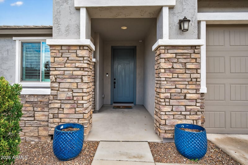 Listing details for 25915 Deer Valley Rd, Buckeye, AZ 85396 : Extensively upgraded home with a functional layout and seamless indoor-outdoor living. Features include a private office with glass doors, chef's kitchen with upgraded cabinetry, built-in oven and microwave, gas cooktop, and an open living area with built-in media center. True split floor plan with a private primary suite offering a spa-style bath, full glass walk-in shower with bench and rain shower head, dual sinks, and a custom closet organizer. Two secondary bedrooms are separated by a bonus living area. Backyard features an extended covered patio, pavers, turf, and a heated pool with waterfall. Wood-look tile and shutters throughout, tankless water heater, laundry with sink and cabinetry, whole-home ethernet, and gas stub for BBQ or fire pit. Seller may consider closing concession. Community amenities include walking and biking trails, a community dog park, multiple playgrounds, a splash pad, and baseball fields. The community offers a variety of outdoor recreational spaces designed for everyday use, activities, and neighborhood gatherings.