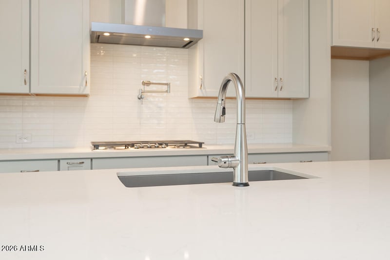 Listing details for 2603 Alfonso Dr, San Tan Valley, AZ 85140 : Discover spacious single-story living in this beautifully designed Tri Pointe Homes residence offering 3,419 sq ft, 4 Bedrooms and 3.5 Baths in a desirable amenity-rich community. The open-concept floorplan is ideal for modern living, featuring a gourmet Kitchen with Winstead Maple Quill cabinetry, soft-close doors, quartz countertops, boxed-in refrigerator, 36'' gas cooktop with hood, built-in microwave/oven combo, Arctic Stainless Delta faucet and Blanco single-bowl sink. Enjoy added functionality with a Laundry Room sink and cabinetry. The Primary Bath showcases a sleek frameless walk-in shower. Tile flooring enhances the extended Foyer, Kitchen, Great Room, Office and wet areas for a seamless, elevated finish.