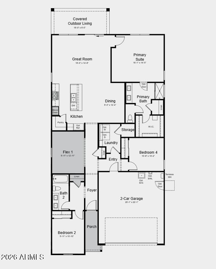 Listing details for 26089 170th Ave, Surprise, AZ 85387 : What's Special: Larger Backyard | Close to Amenities | Flex Room | Covered Patio. New Construction - May Completion! Built by America's Most Trusted Home Builder. Welcome to the Onyx at 26089 N 170th Avenue in Asante Discovery. Step inside to a welcoming entry that opens into a cheerful dining room, a spacious great room, and a bright kitchen with a generous island that invites gathering. The outdoor living space just off the great room offers a peaceful place to unwind at the end of the day. Near the two-car garage, you will find a convenient laundry room and a comfortable bedroom. The secluded primary suite features a relaxing bathroom and a roomy walk-in closet. On the opposite side of the home, discover another bedroom, a full bathroom, and a versatile flex space near the inviting entry. Artisan at Asante offers a vibrant lineup of amenities, including a resort-style pool with lap lanes, a recreation center with fitness and aerobics rooms, and spacious indoor and outdoor gathering areas. Enjoy pickleball and basketball courts, plentiful green space, and winding walking paths that make every day active and enjoyable. Additional Highlights Include: gourmet kitchen, flex room, paver driveway, walk and entryway, 8ft interior doorways, modern farmhouse design, upgraded counter tops, cabinets, & flooring, and 2 tone interior paint. MLS#7006511