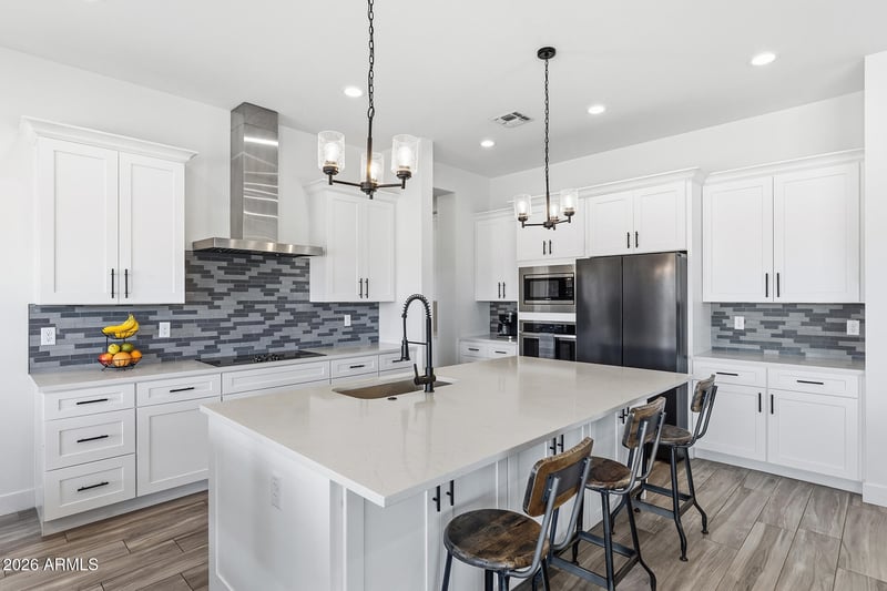 This beautifully upgraded 5 bedroom, 3.5 bath home features 2,750 sq ft of thoughtfully designed living space with 10 foot ceilings, stylish wood-look plank tile flooring, oversized cabinetry, and gorgeous white quartz countertops. The open-concept floor plan is ideal for everyday living and entertaining, centered around a spacious chef-inspired kitchen with a large island and walk in pantry.